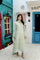 Mint green khadi 3 piece suit with handmade pigeon embroidery and stone on neck line paired with organza dupatta